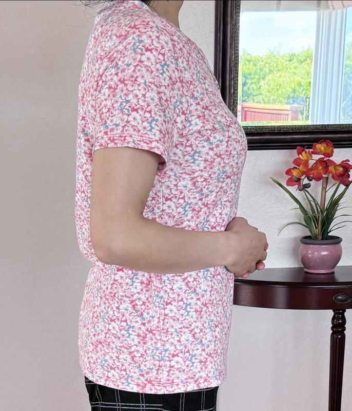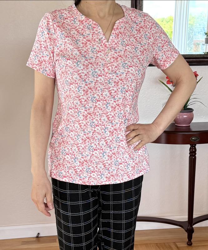 Petite Short Sleeve Floral Party Henley Top, Created for Macy's