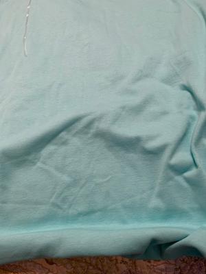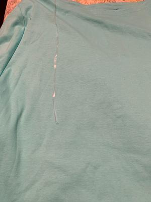 Beautiful sweet color, goes with a variety of my pants. The material is a little heavy for a "T Shirt".