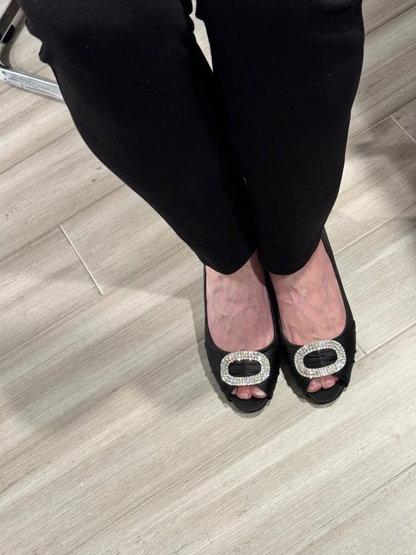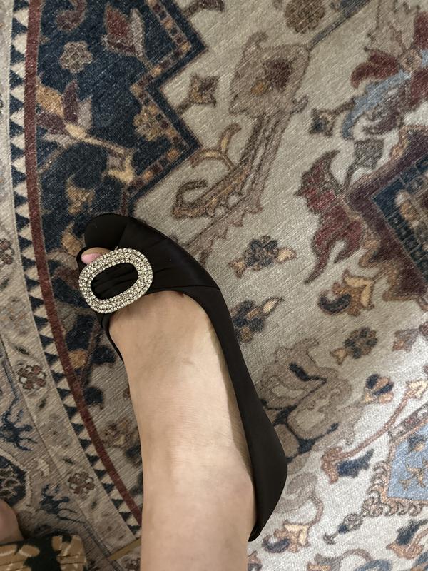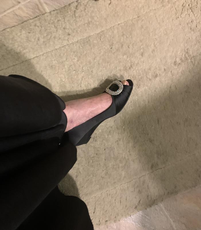 This shoe is beautiful and comfortable, I can’t wear anything other than a kitten heel and these are the perfect height, they do not hurt my feet and are easy to walk in. The only negative is they are an entire size too big .I usually wear an 8 1/2 but ordered a nine due to inflammation in my feet but with this particular shoe I walk right out of them, I will be returning the shoes for a size eight.