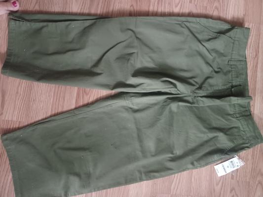 Lightweight capris with stretch waist. I usually wear a 18 and sized up. I’m 5’ 4” amd hits mid calf. There are slits on the side of the pant leg. Capris are zippered and double buttons on top. I washed them twice and color stayed true.
