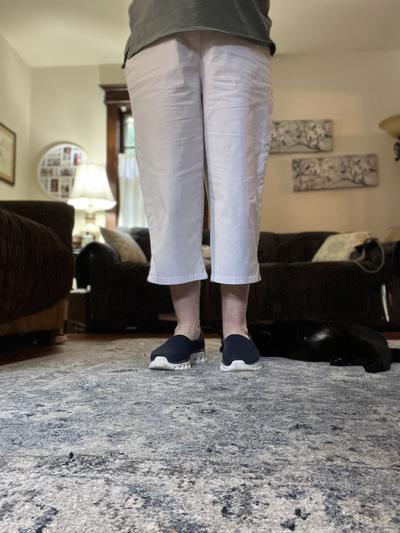 I really like these Capri’s, and the comfort waistband is nice. Love the white, I actually needed new white pants. They’re a little oversized in the leg and bottom, but other than that, I really like them.