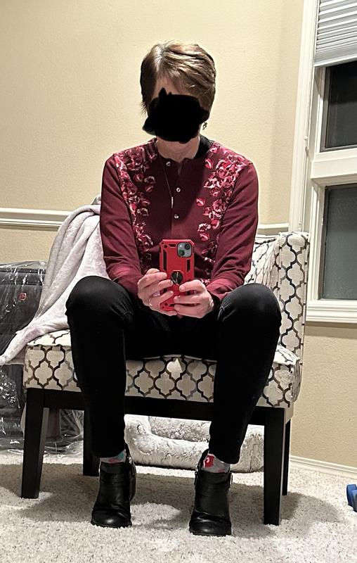 This sweater fits my 5’7” 142 lbs. just right. Looks great for the holidays. I wear it buttoned up with a t-shirt underneath. Works with jeans or dressier pants.