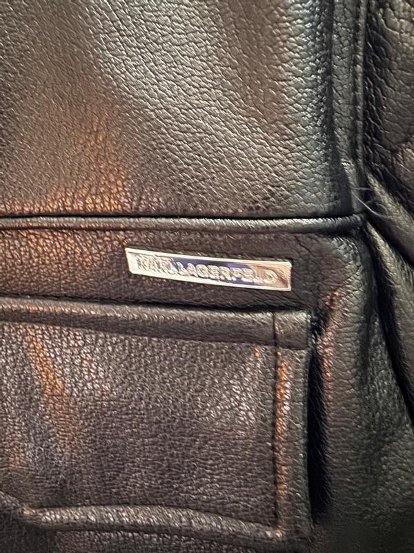 This Karl Lagerfeld vegan leather coat is buttery soft and feels like real leather. Unlike other polyester “leather” coats this one really does mimic the real thing. Quality constriction of materials with nice features and detailing. Sleeve cuffs have aesthetic and functioning zipper to expand cuffs. Bottom hem has button snaps to expand or contract.