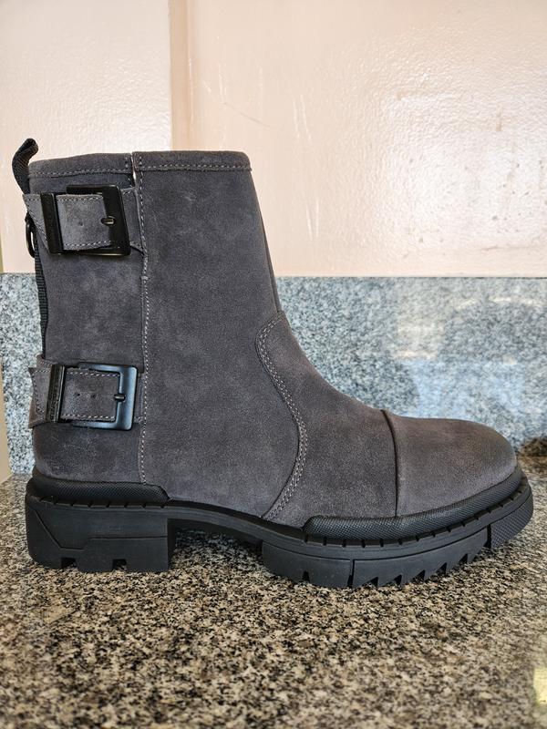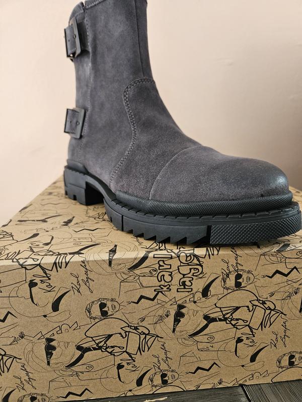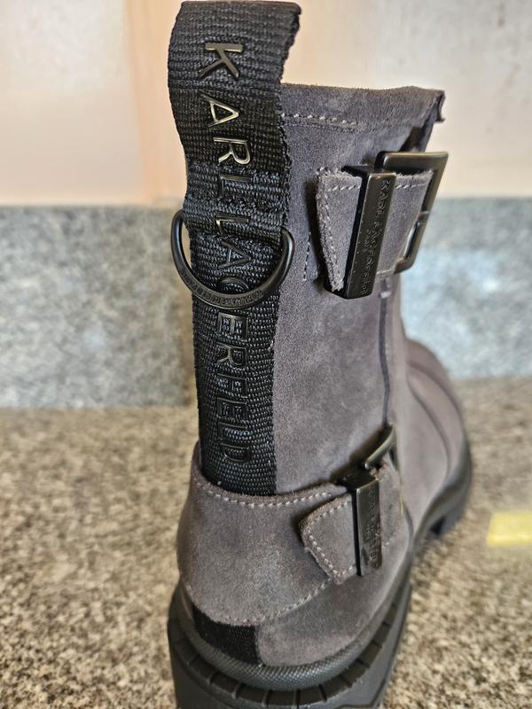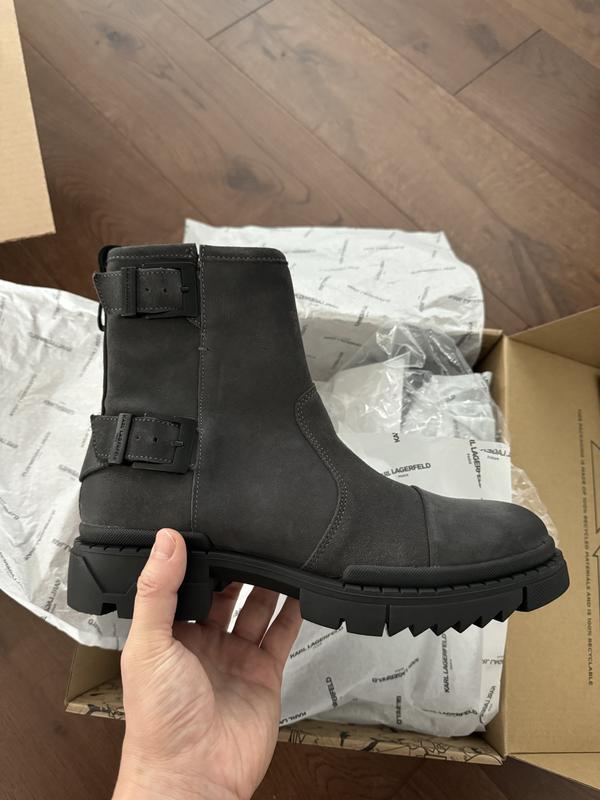 I really like the look and style of the Karl Lagerfeld Men's Lug Sole Suede Engineer Cap Toe Boot. They can be worn with dressy, dress casual and casual clothes all alike and look good. I however caution the buyer that the Karl Lagerfeld Men's Lug Sole Suede Engineer Cap Toe Boots are narrow and difficult to get on if you have just slightly wider feet. They are comfortable however after you've gotten them on your feet. I like these boots!
