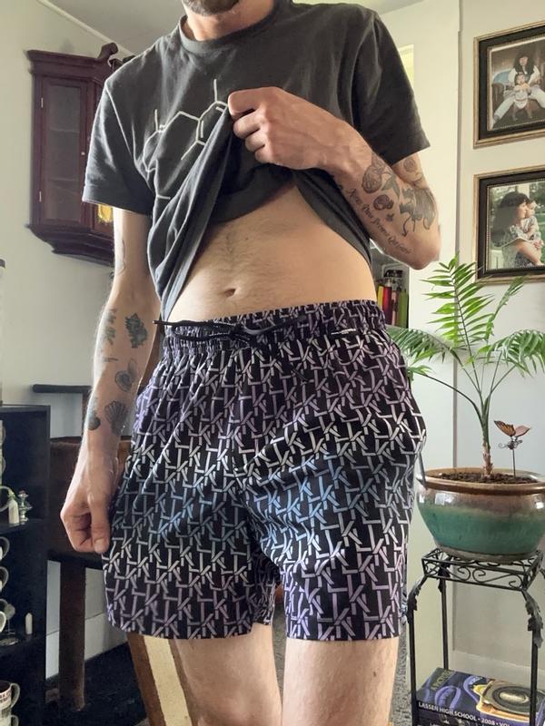Karl Lagerfeld Men's Modern Euro Printed Stretch 5" Swim Trunks