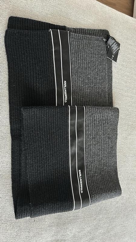 This Karl Lagerfeld Paris scarf if very nice and soft. It’s very luxurious. It’s made with fine material and it’s a great piece to wear. It’s very warm and durable. It can be style fin different ways and has two tone colors that are very nice and masculine.