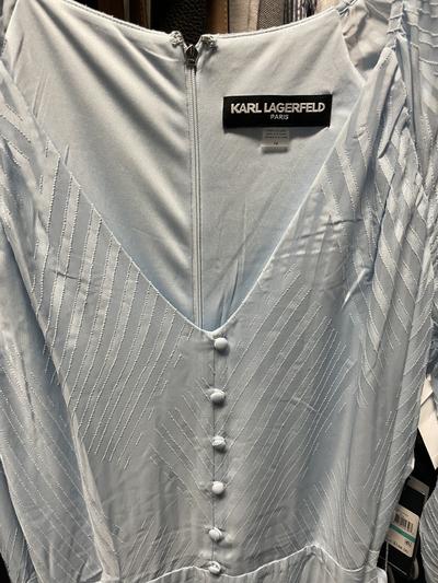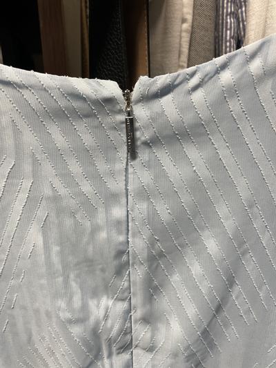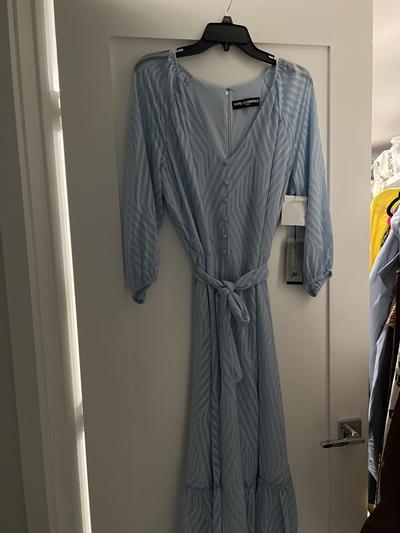 This dress is a pretty design and gorgeous color. However, it was WAY lower in front than depicted in the picture. I'm short-waisted, so everything is a bit compressed on top, and it simply was too revealing at the "V." I sadly went ahead and packaged it and sent back, even letting Bloomingdale's know I had to return it. I got notice today that they were returning it to me as it had been worn. When I pressed them about it, they said it had been worn and smelled. I would not and could not wear the dress because of the way the front fits. I told them I'll never risk buying anything from them again.