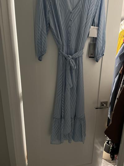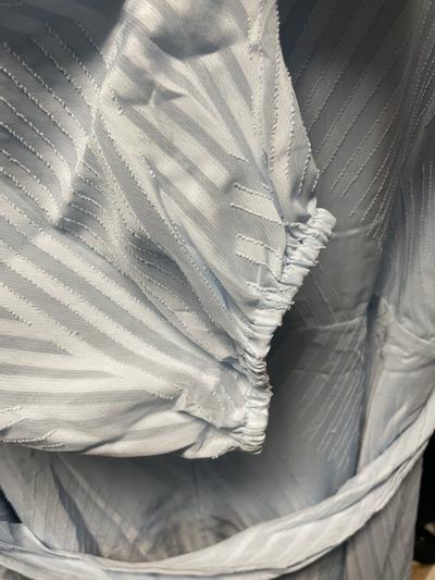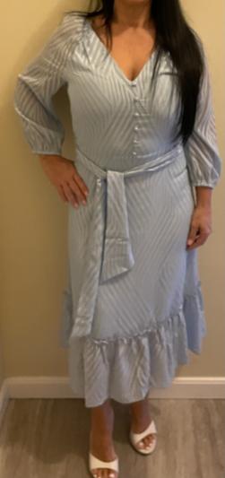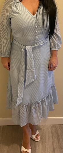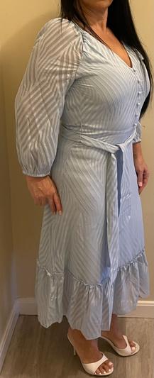 Pretty fabric and dress. Unfortunately, this style did not look flattering on my petite, curvy body shape so I had to return it.