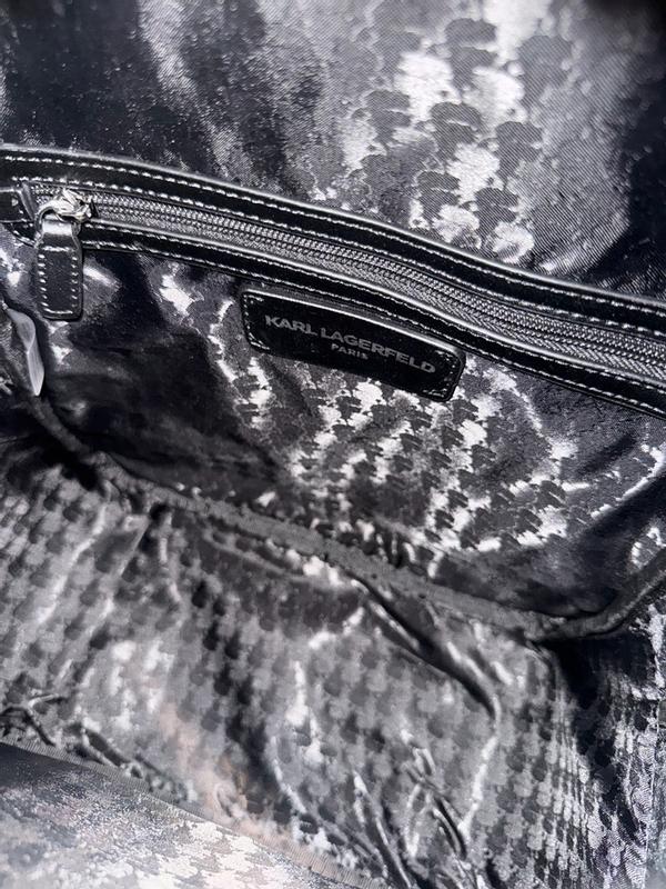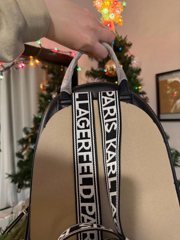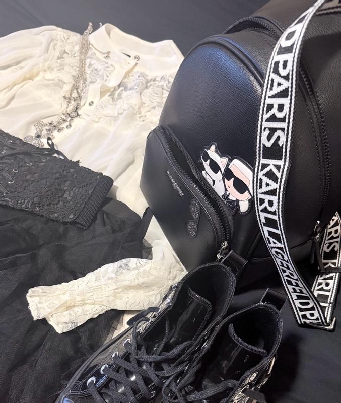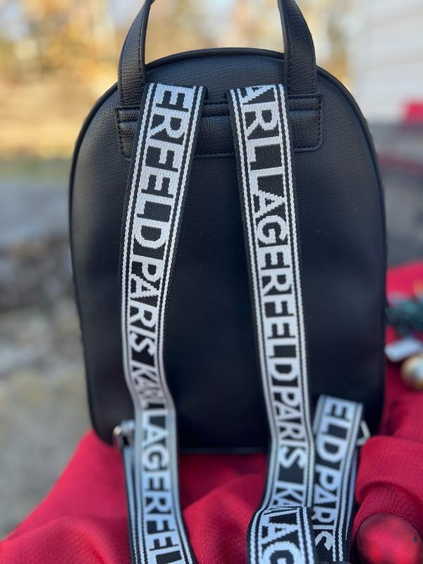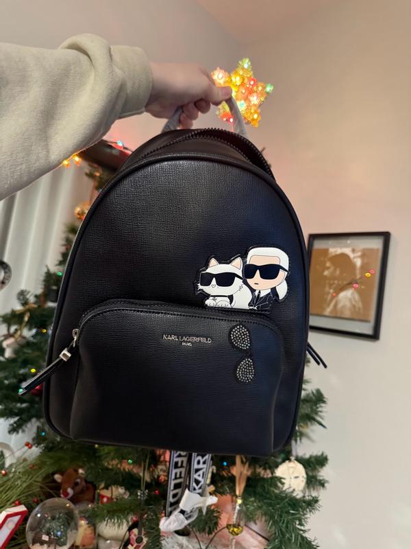 Cute backpack with iconic Choupette and Karl Lagerfeld pictured in a kawaii chibi style appliqué. The backpack is a really nice size, not too small and not a full size backpack. The straps are super comfortable to wear. There is a small zipper inside for personal items and a large capacity main compartment. A small outer zippered compartment is on the outside of the bag that fits a phone well as well as a couple of other items.