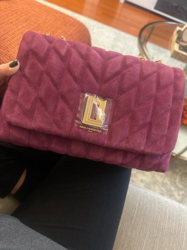 I love the color and suede material on this purse! The gold hardware is also very nice and hasn’t scratched at all and the chain is comfortable to wear on the shoulder. It has 2 pockets for a ton of storage, and is big enough for being an everyday bag for me.