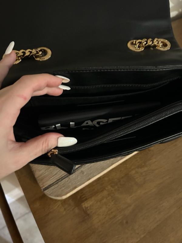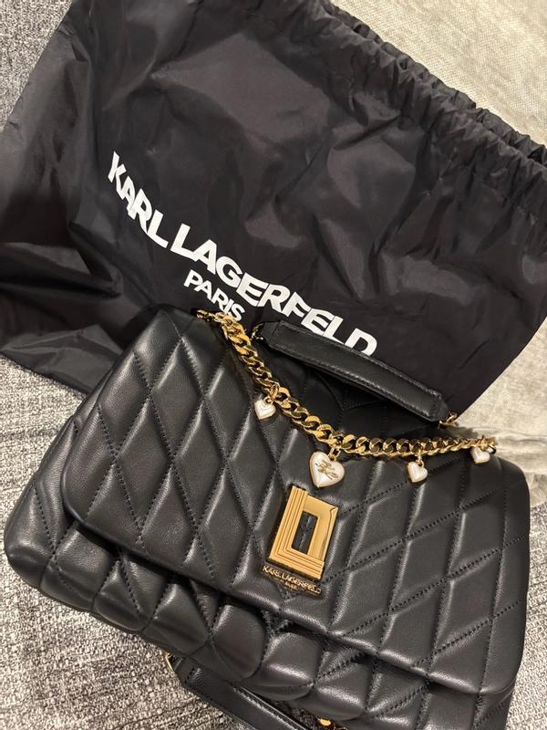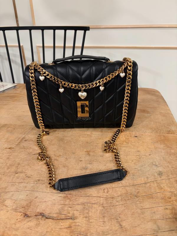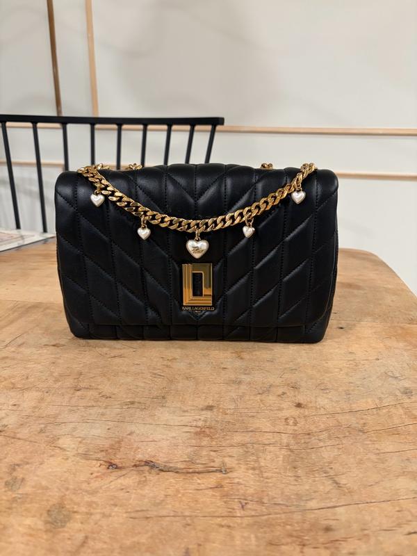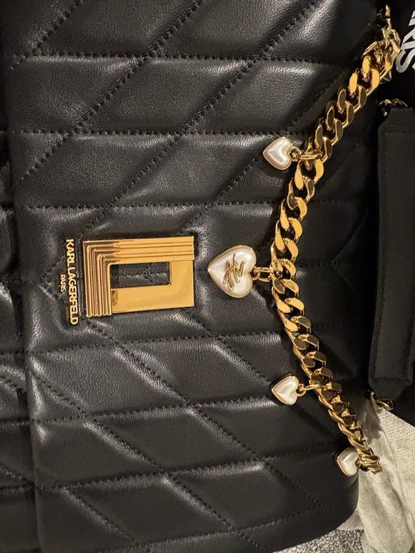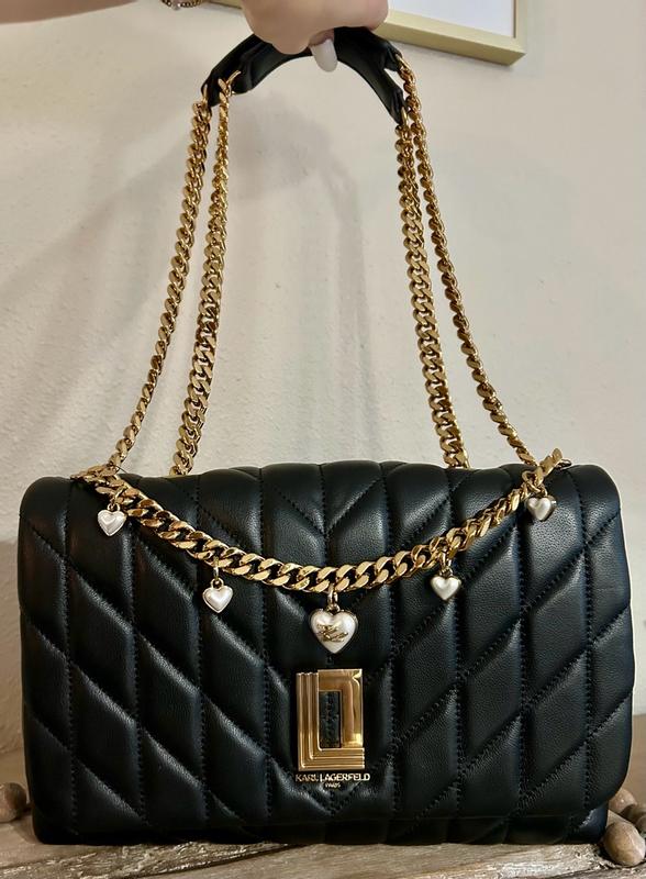 This Karl Lagerfeld Lafayette Shoulder Bag is so stunning and elegant! It’s great for many different occasions and can go with so many different styles and looks. It’s a perfectly sized shoulder bag and I was surprised by how much it could hold for its size. I liked that there are different compartments to help keep your items organized – the card slots and zippered compartment in the middle are great. The quilted black leather with the gold heart chain was so beautiful, elegant, and fun! The chain is slightly weighty – but I found that it helped hold the straps to stay in place, so I didn’t mind. It’s soft to the touch, yet sturdy and is so versatile – I love it!