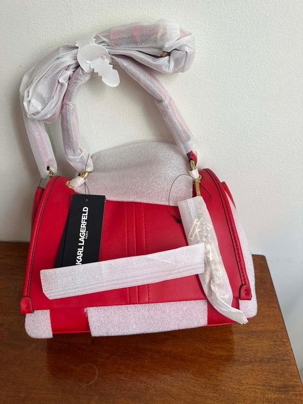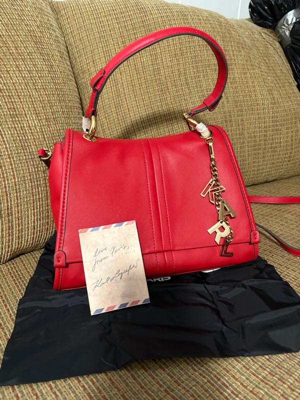 This hand bag was lovey in the store - but it had damage (indentations) under where the KARL charm lays. So…I decided to order one hoping it would come from the warehouse with all the original packaging. That is exactly what I received. Unfortunately, as I unpacked it there were other issue with the bag. One example: It had an indentation from the rectangle sales tag. Also, the box it was shipped in was too big & had no shipping material- so the handbag flailed around inside the box during shipping which didn’t help. I wanted this handbag to work but Karl Lagerfeld & Macy’s need to do a bit better. Bummed!