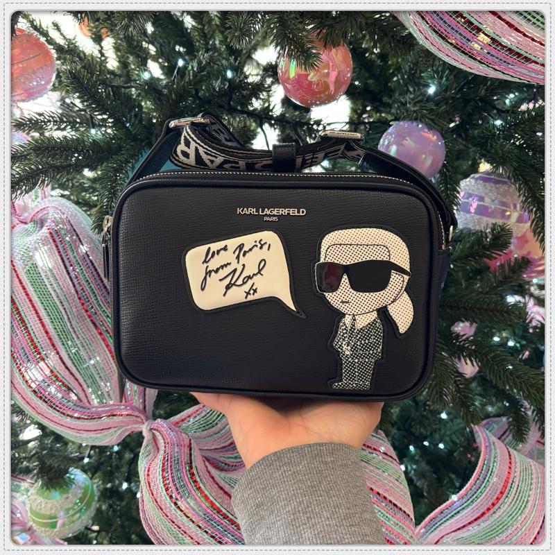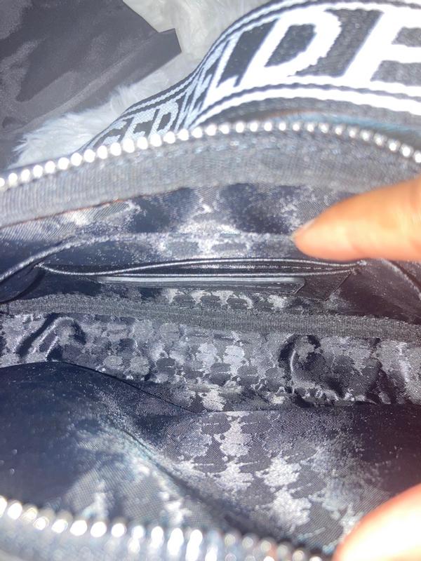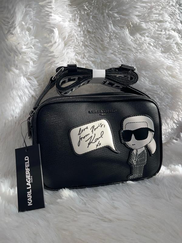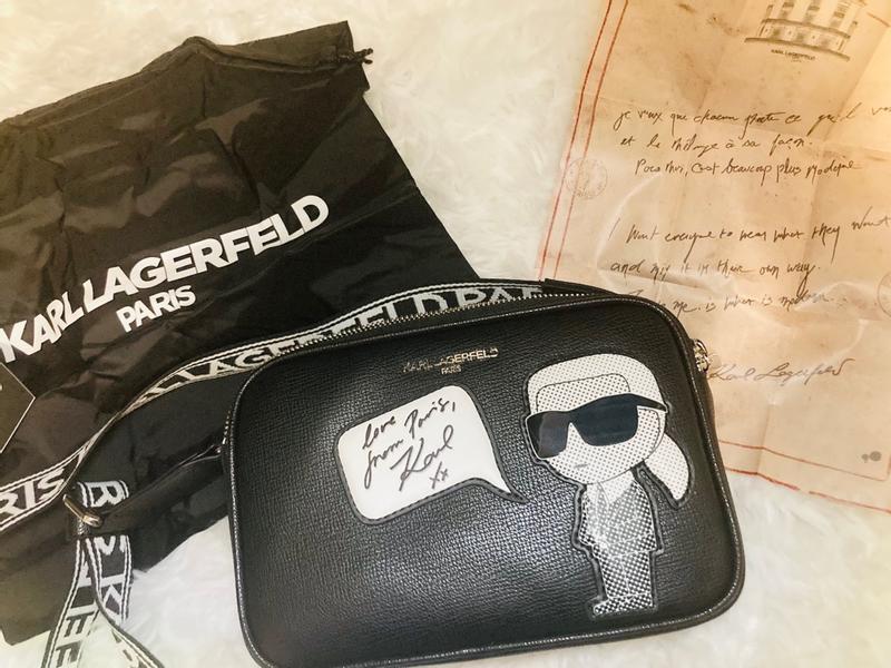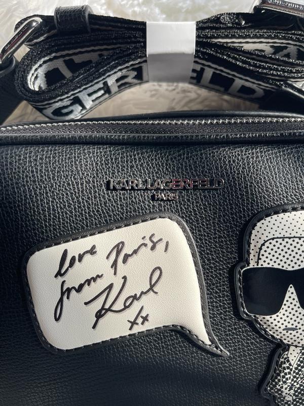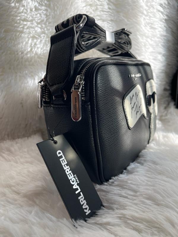 this bag has many little details to it the stitching on the inside is the Karl logos head which i think is a really cool detail they added,it comes with a black drawstring bag you can put an umbrella in or some sunglasses, my favorite part about this bag is the black and white strap. it’s spacious enough to fit your essentials items but nothing too big,overall this is a nice going out bag.