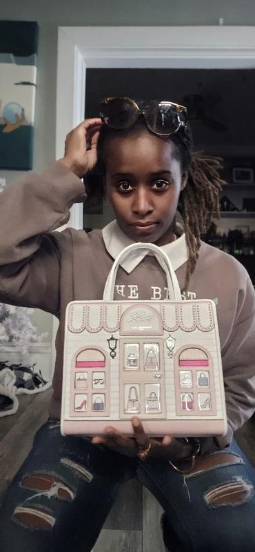 This purse is pretty and practical. The straps are adjustable and thick and aren't uncomfortable. It's durable and there are just enough zippers and pockets. I love that it's a conversation starter and it's not too big or small. I love it. I recently went and checked out more purses from this designer and they're all gorgeous. Karl doesn't miss.