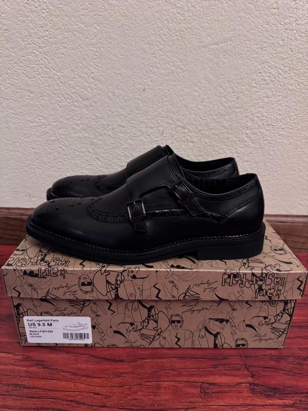I recently got a pair of the Karl Lagerfeld Paris Double Buckle Monk Strap Wingtip Dress Shoes. I was looking for something a little more distinctive than your standard lace-ups, but still sharp enough for more formal occasions. The first thing that caught my eye was the overall look. The double monk strap design definitely adds a touch of personality, and the wingtip detailing gives them a classic, sophisticated feel. The branded buckles are a nice touch – subtle but definitely a nod to the designer. Out of the box, the shoes looked and felt well-made. The leather has a nice sheen, and the stitching seems solid. They definitely have that air of quality you'd expect from a brand like Karl Lagerfeld Paris. Trying them on, the fit felt pretty true to size. They were comfortable enough for a dress shoe right away, though I'm sure they'll break in even more with wear. The double buckles allow for a bit of adjustability to get a secure and comfortable fit across the instep. I've worn them a couple of times now – once to a slightly more upscale dinner and another time to a work event. They definitely elevate an outfit and draw a bit of attention in a good way. The rubber sole is a practical feature, offering a bit more grip and durability than a traditional leather sole, which is nice for navigating the occasional less-than-perfect pavement around here. Overall, I'm really happy with these Karl Lagerfeld Paris monk straps. They strike a good balance between classic style and a bit of modern flair with the double buckles. They seem well-constructed and comfortable enough for dress shoes.