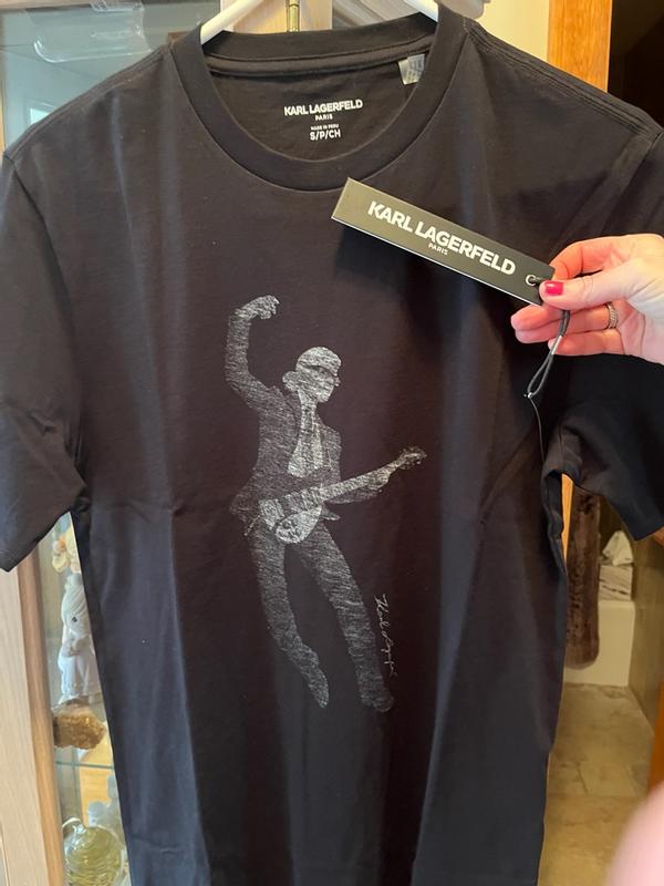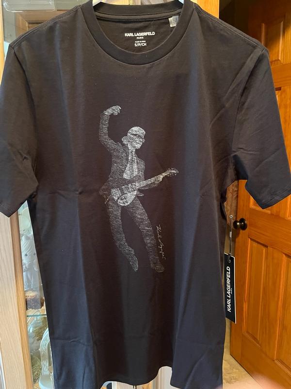 This is a nice short sleeve t shirt. By Karl Lagerfeld, nice quality and fits well to size. a quality product. And very durability as well. Highly recommended.