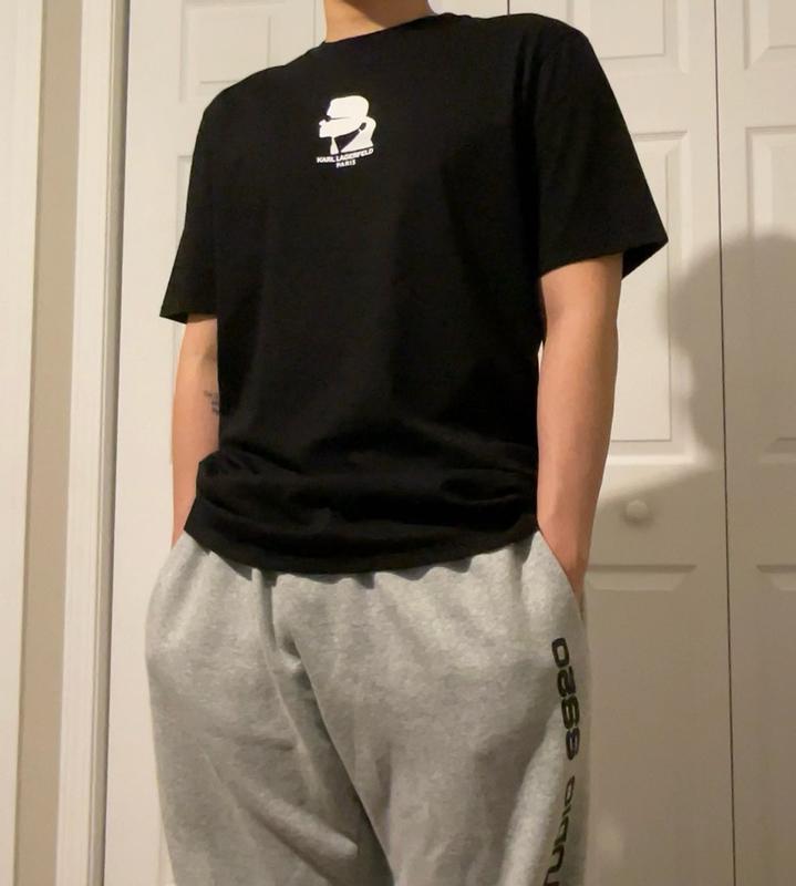 5/5 shirt. The quality feels great — the fabric is soft but has enough weight to it that it doesn’t feel cheap or flimsy. Stitching is clean, and the shirt holds its shape well after a wash. Design-wise, it’s minimal but that was the point. The silhouette logo of Karl adds a nice designer touch without being loud or over-the-top. It’s one of those versatile pieces that works just as easily with jeans or layered under a jacket. Definitely feels like a solid value for a branded tee.