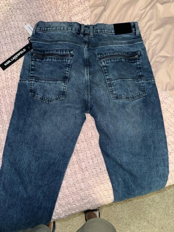 The zipper closure adds a modern touch to the classic denim design, providing both functionality and a fashion-forward look. The quality of Karl Lagerfeld's denim ensures durability and comfort, making these pants a versatile piece that can be dressed up or down for various occasions.