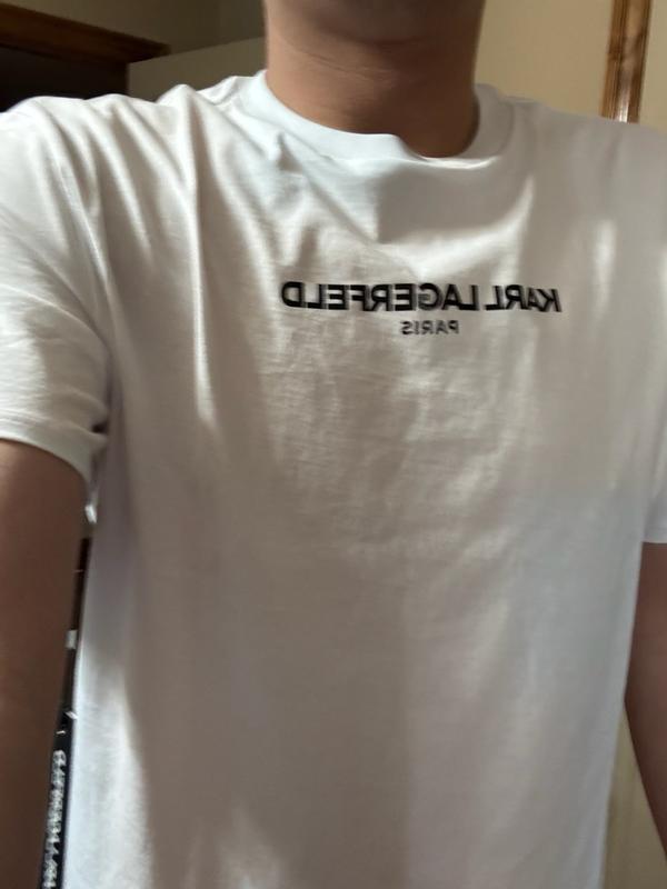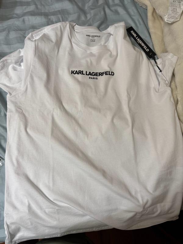 My Karl Lagerfeld Paris logo print core tee was a great fit the material is light. The sizing was just right and was very comfortable. It looked good on and recommend to others.