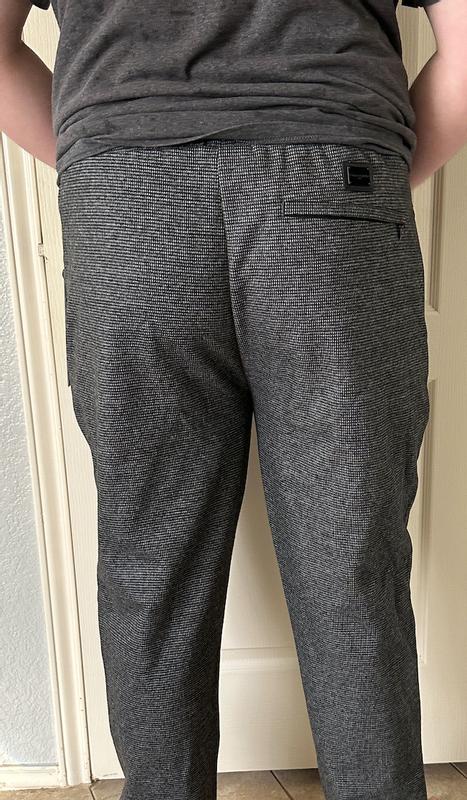 I really like these pants. They are quite comfortable and fit true to size. They also have a nice pattern that makes them look fancier than plain sweat pants and better to wear outside the house. If you’re looking for a comfortable pair of pants that looks a bit fancier I’d definitely recommend this product.