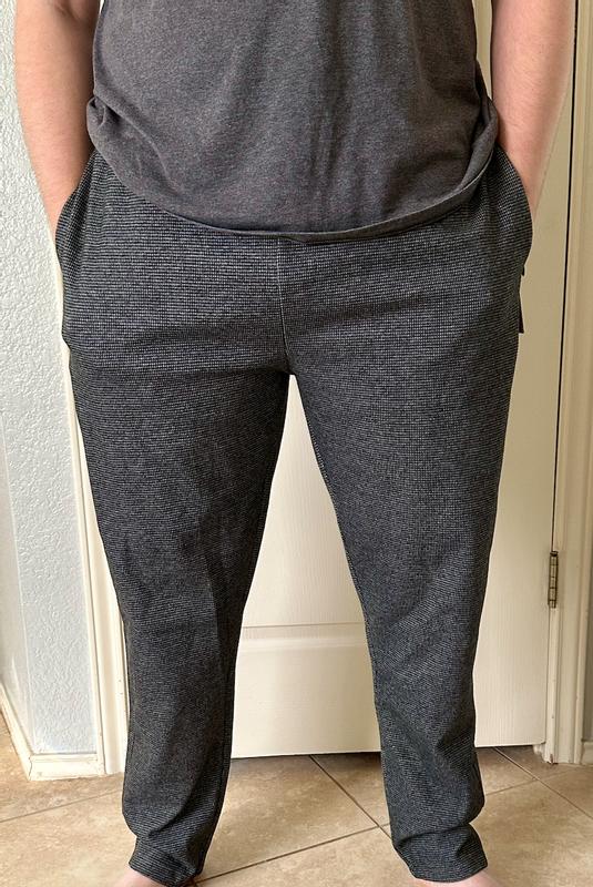 Fantastic pant overall, looks good enough to wear to work under a sweater, but casual enough to lounge/ exercise in. This is my 3rd pair of Lagerfeld track pants. Love all of them including this one but the length is a little inconsistent pant to pant and don’t quite match the stated inseam lengths.