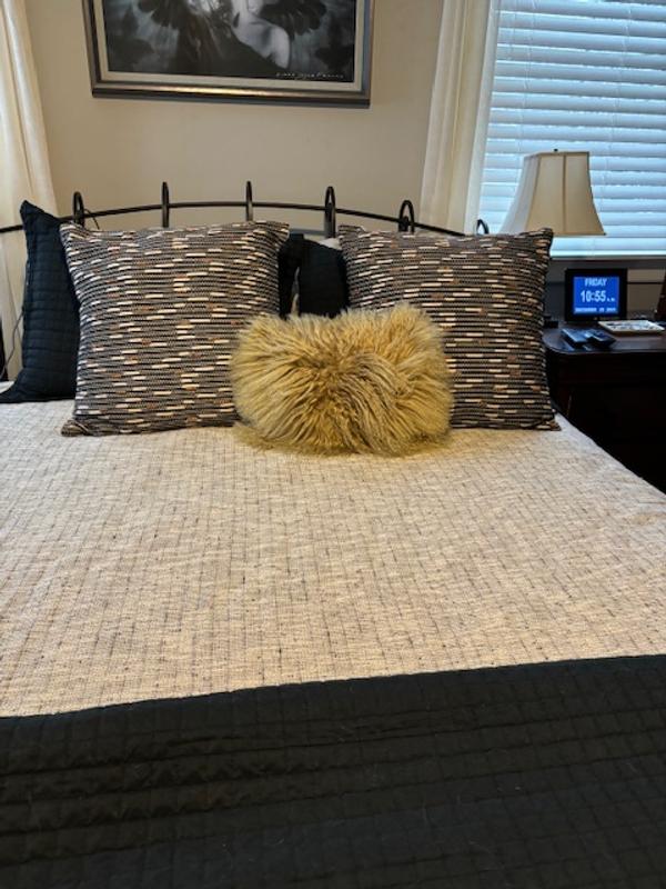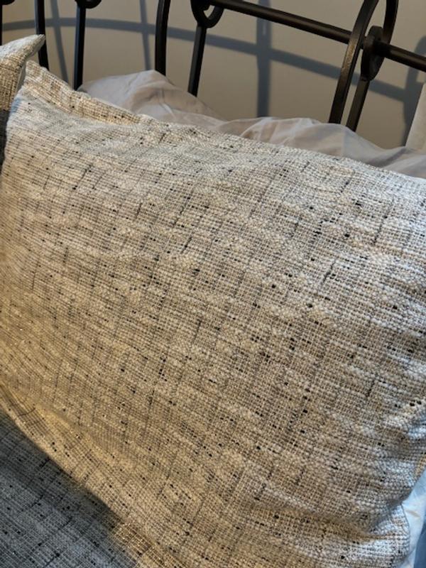 Lovely fabric that, unfortunately, smelled. Not sure where the smell originated by was definitely absorbed into the fabric of the comforter. Returned the comforter to Macy's.