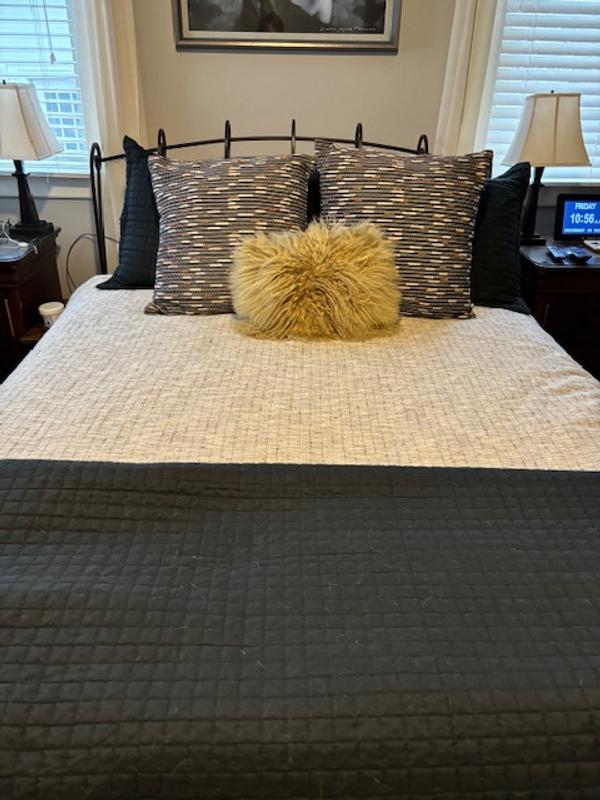 The Karl Lagerfeld Metallic Tweed comforter set is absolutely stunning and looks beautiful in any bedroom. The interwoven pattern has a gorgeous color scheme and is very soft and comfortable. The comforter is the perfect weight and keeps me cozy and warm all year round. I love that it is machine washable and easy to care for. It is the perfect set to add a little classy sophistication to your bedroom.