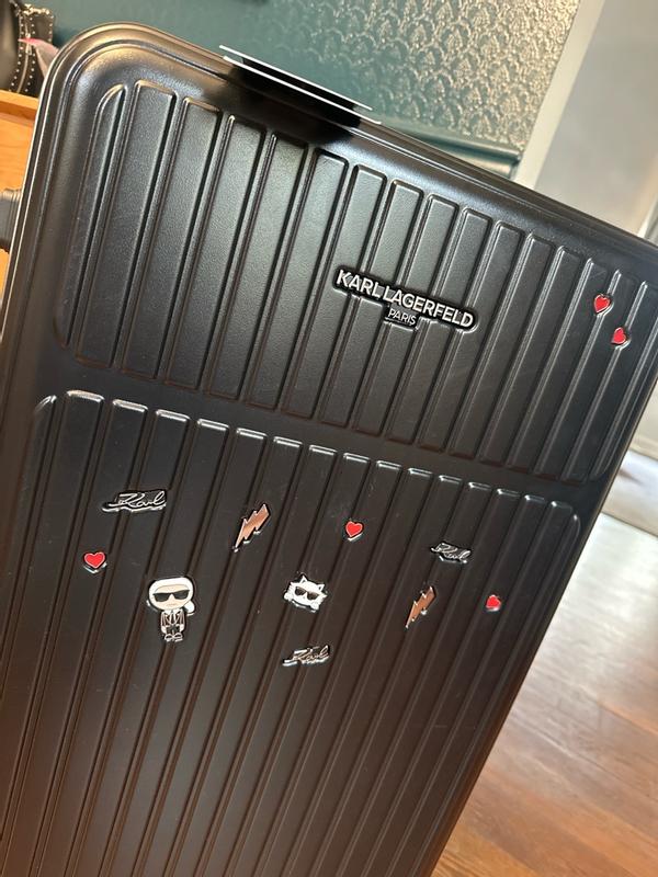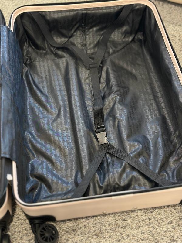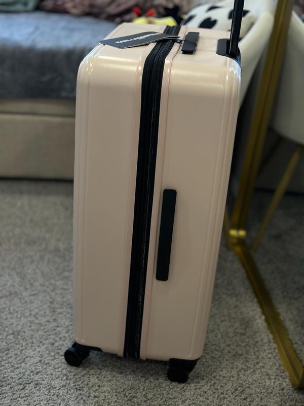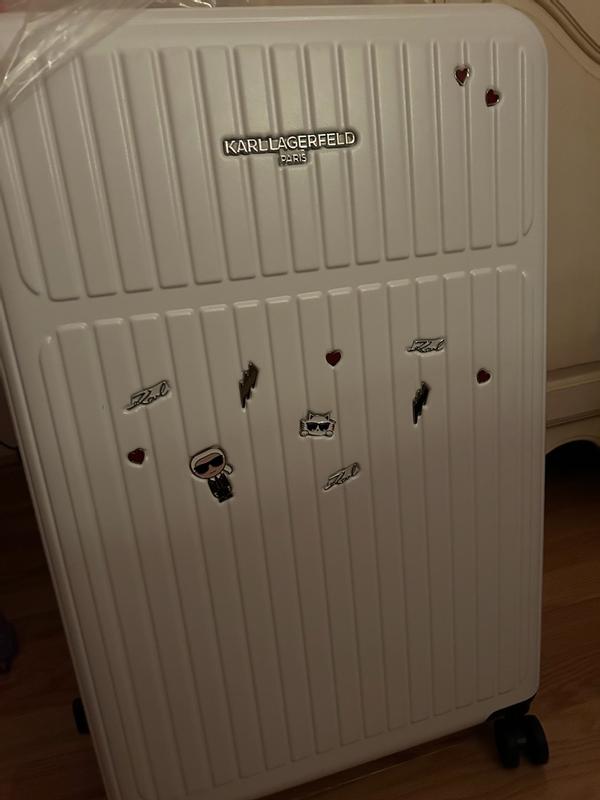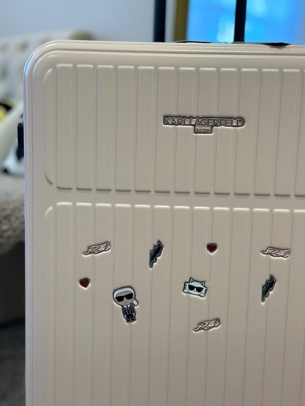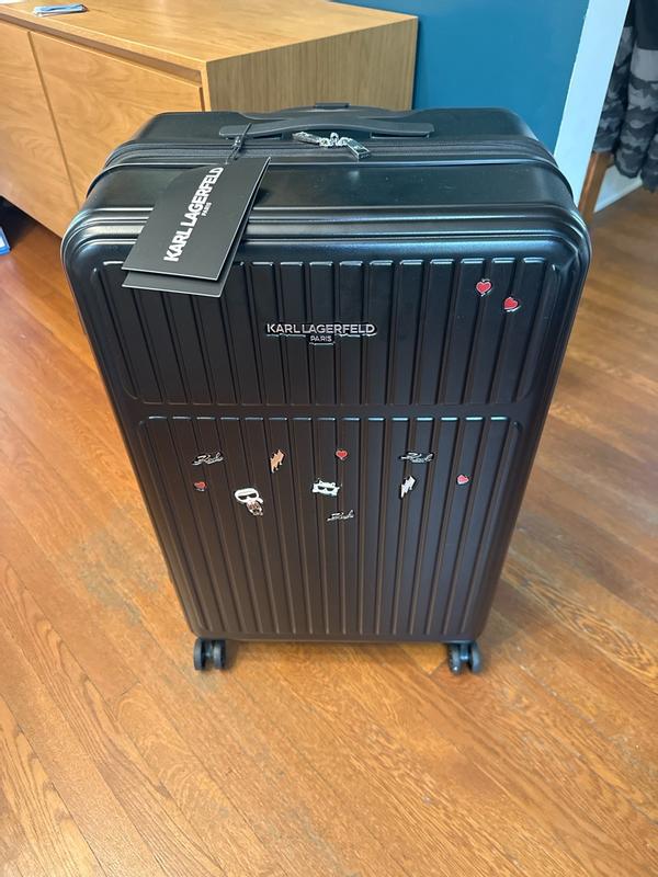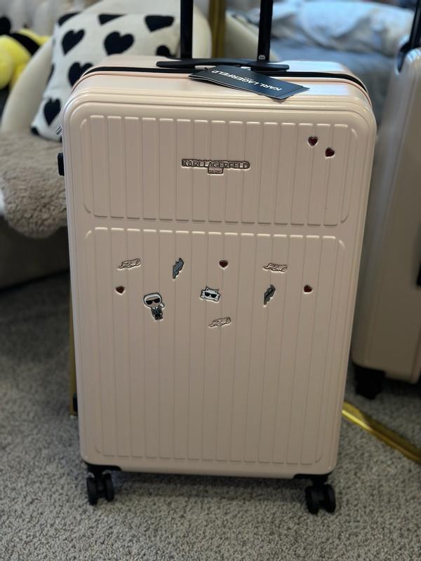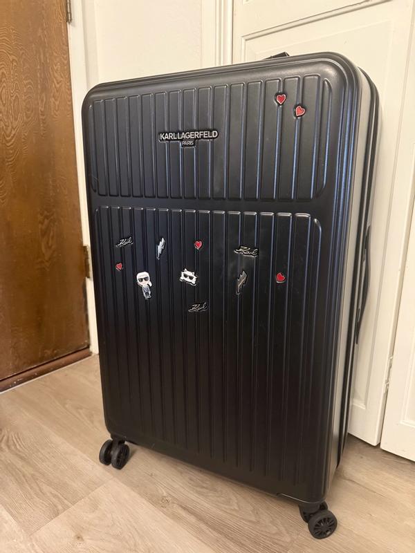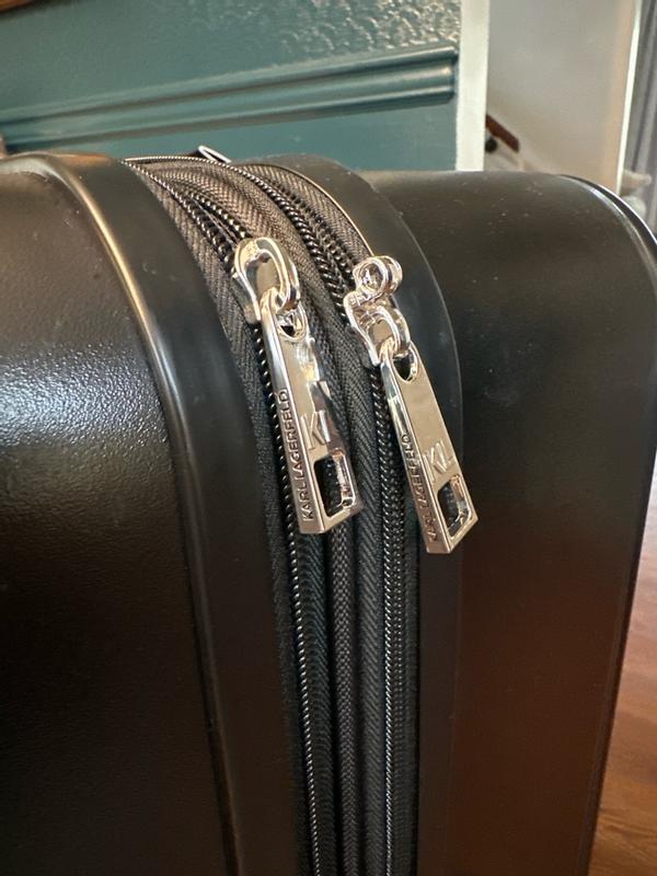 I travel often, including abroad and on transatlantic flights, so it is very important for me to have a suitcase that is beautiful, durable, and convenient. First of all, this suitcase is definitely eye-catching. It’s extremely important to me to have a unique suitcase that is easy to identify on a baggage carousel or in any luggage area. With those pins, it’s hard to miss this suitcase. I’ve always liked Karl Lagerfeld purses with similar pins, and this suitcase definitely looks very stylish and trendy. But this suitcase is not just for fun—it is also very convenient and comfortable to use. It has a thick, hard shell while still being lightweight, and it rolls smoothly with maneuverable 360-degree wheels that make it easy to move around. The handle is adjustable as well. Inside, the suitcase has a zipper divider to close off one side and separate items. All the zippers work great. It also has an expandable feature for extra interior space. Overall, I am very happy with this suitcase and would definitely recommend it.