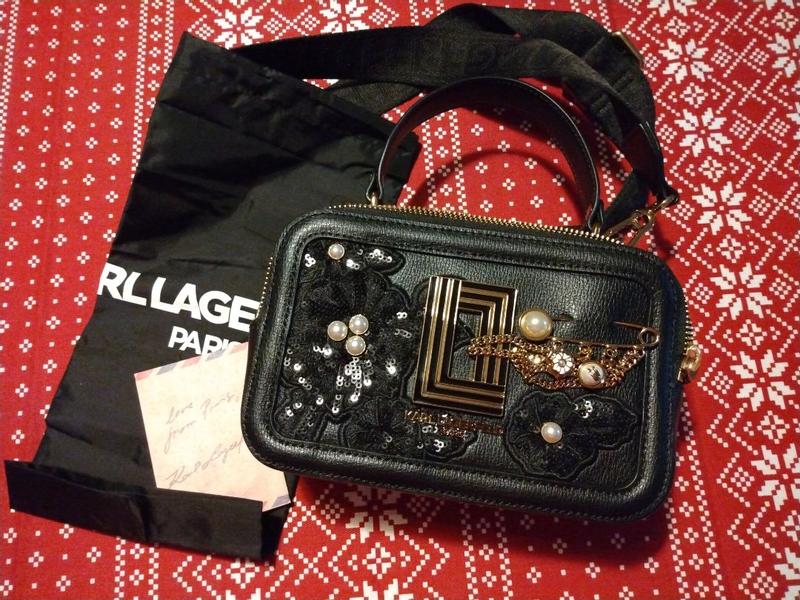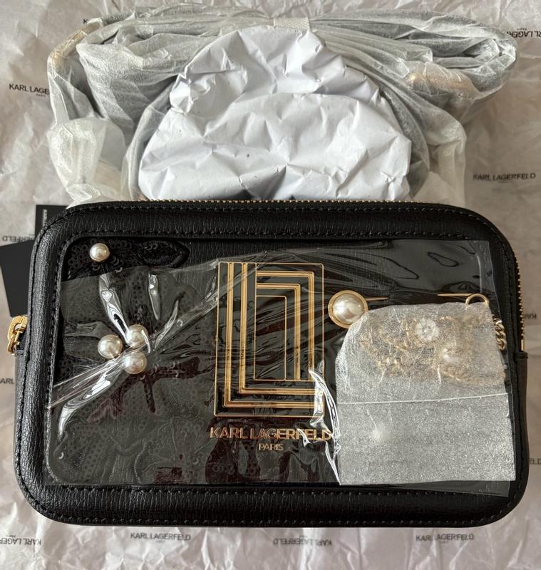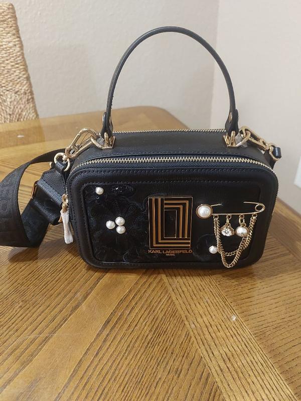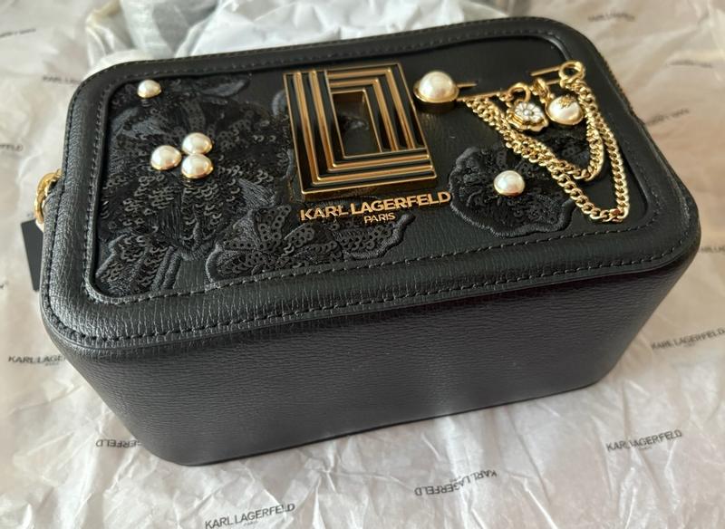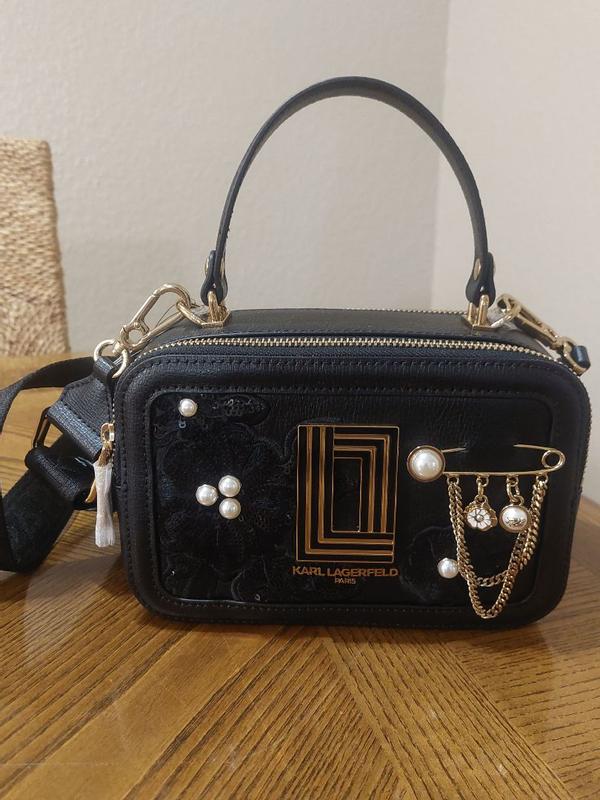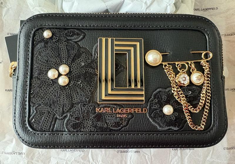 This Karl Lagerfeld Paris handbag is absolutely gorgeous! It was packaged very well and is impeccably designed!! The sequin and pearl embellishments are stunning! It is comfortable to wear, has an adjustable removable strap, and also has a top carry handle. The interior has convenient pockets and card slots. I absolutely love it!