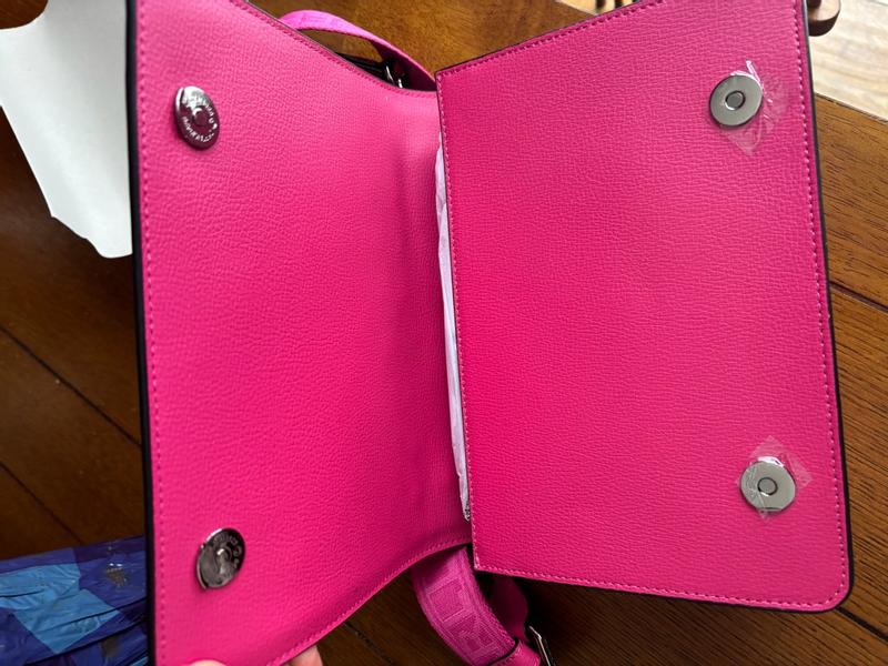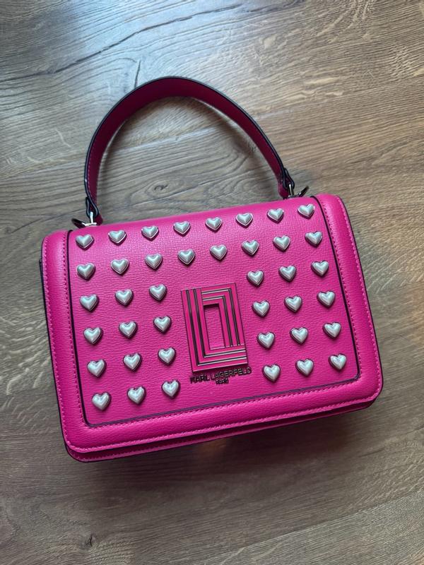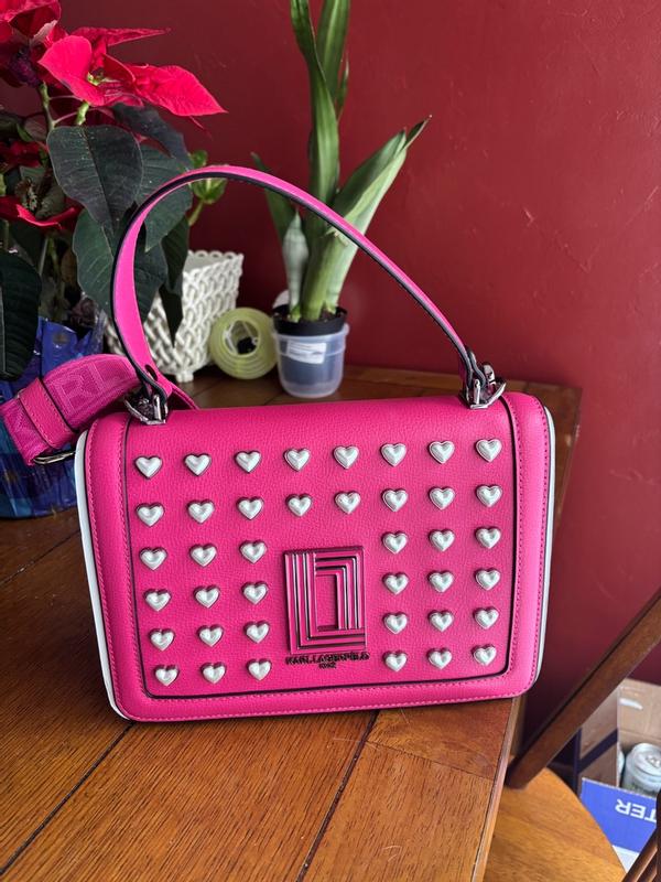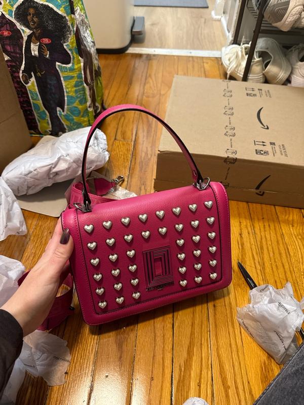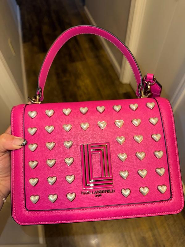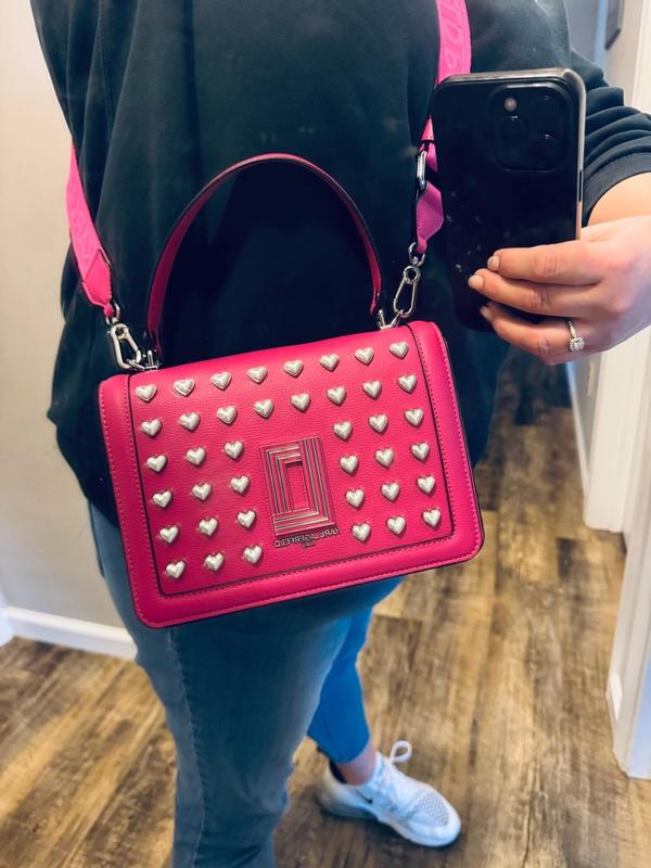 This purse is absolutely adorable. The bright fuchsia color is lovely and also makes a bold statement. It is made very well and feels very durable. I love the metal heart detail on the front. Ver unique. This also comes with a long strap which I appreciate. The snap closure is secure-your stuff will stay safe. Can’t wait to wear this for a date night out.