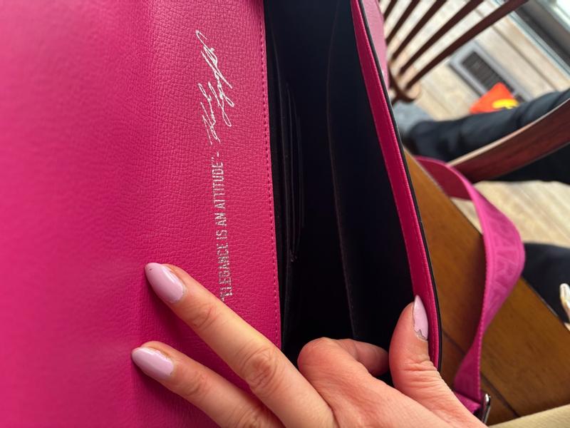 Cute quality bag! You can see so many small details they added to make this a quality bag. It even comes with a large drawstring bag inside with the brand name on it just as an extra. There are pockets inside on either side along with card pockets so you could have the purse double as your wallet too. There’s a cute quote on the bag when you open it up “Elegance is an attitude” and the adjustable strap is so cute and practical for carrying on the shoulder. It’s a good size to fit the essentials!