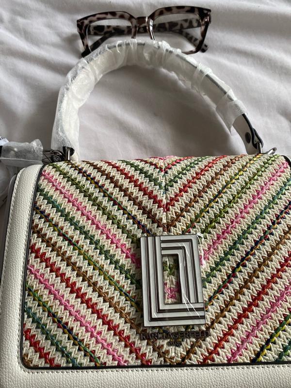 Great quality! This purse feels sturdy and the stitching is flawless. No weird smells, just good leather. The packaging is very luxurious, and it even comes with a dust bag. The design of this bag is the cutest, and the rainbow thread against white makes it match just about any outfit. Very roomy, and the built in card holder is a nice touch. I dress more casual most of the time, so I love the fabric strap. It makes me feel effortlessly cool. Can’t wait to try it on with some summer dresses!