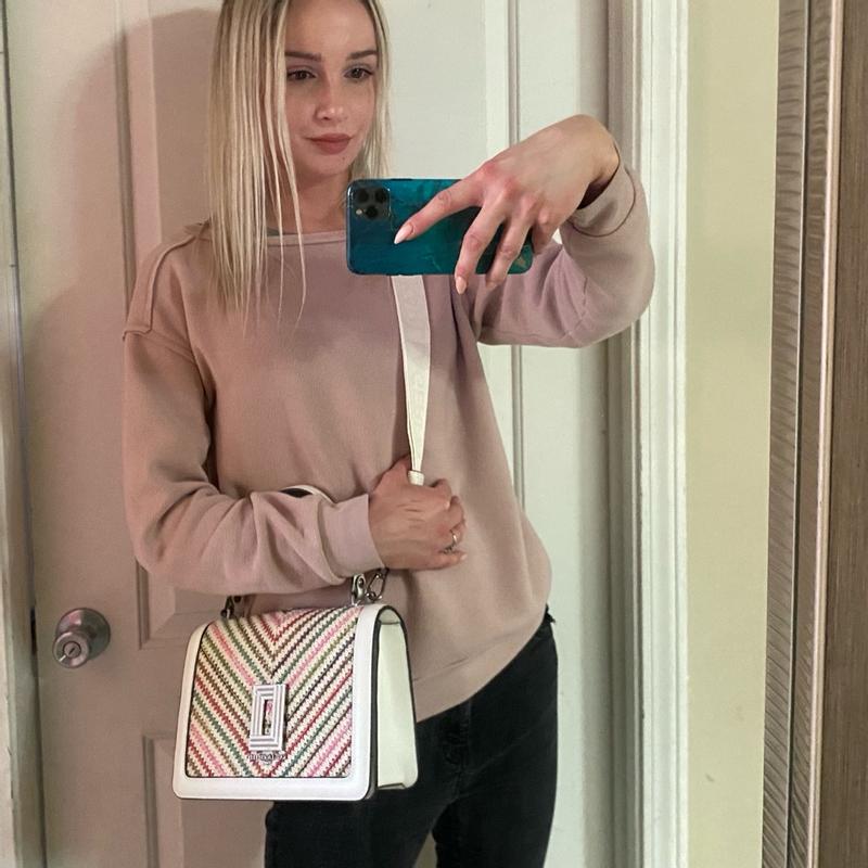This purse came exactly right on time. I was looking for a purse that's going to be small enough to carry all of my essential items in addition to my charger and my phone and this fit the bill perfectly. I am able to put everything that I need in proper facing in the purse. The appearance of the purse is very universal to which I can pair it with any outfit that I have in my closet and it's a piece that I can easily wear for all of the summer as well as the spring months. I absolutely love the colors of this particular bag and the white just screams fresh, and peaceful vibes. The natural feel on the flap of the bag just makes it a piece that you can easily transition from the spring to the summer. I didn't have any problems with closing the bag at all and having my items secure in the bag. And the best part is I can use this as a crossbody or even I can carry it on my arm.