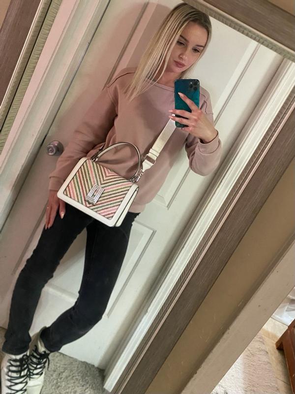 Very pretty bag ! The texture is super nice ! It comes in a very durable material !! Its size is perfect and the color is so pretty for the summer ! Its closure is so steady ! I love this bag