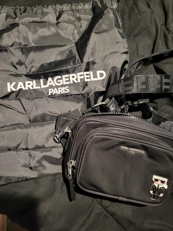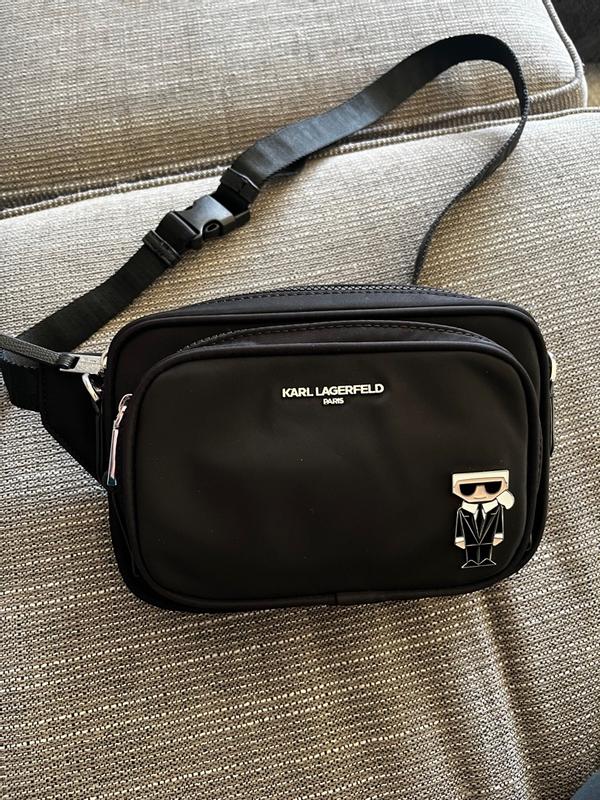 The Voyage Convertible Crossbody Belt Bag from Karl Lagerfeld Paris can be worn on the waist or across the chest. It comes with a separate strap for when you want to wear it as a crossbody. The strap has the brand name across it and the length adjustable. It’s hefty and the width of it is thicker than I’d prefer. The clasps on either end clip onto the bag easily. When converting it to a crossbody, there is a pocket in the back to tuck in the waist straps. I’m not a fan of this design - it adds quite a bit of bulk and is very noticeable inside the bag. The bag itself is made of nylon and has silver hardware. The quality feels good and makes cleaning it easier. The bag is quite roomy inside and there is a pocket that zips up. The front pouch also has some pockets for your cards.