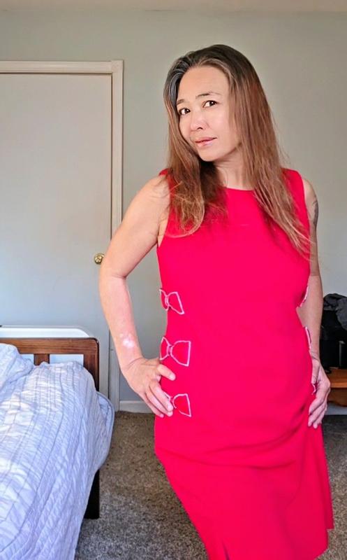 I received this for testing purposes, but this is my own review. The quality of this dress is super nice. It’s very thick. Right away I could tell that this is not gonna be able to go on a regular washing machine. And per the tag it does say dry clean only. The beading around the bows is very delicate. So you definitely don’t want that going in a regular washing machine. I got a size 12 it fit perfectly. I wasn’t sure how it was going to fit since I’m more of a size 14. This is a very high-quality dress. It definitely screams Christmas. I think this is a perfect holiday dress to wear out on a special occasion. I’ll definitely be looking into other clothing options from Karl Lagerfeld.