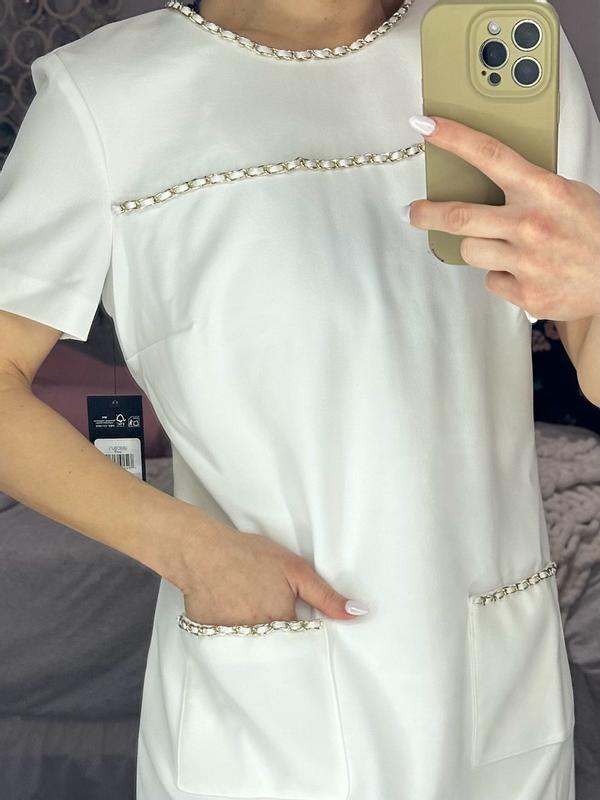 The dress is beautiful. The gold chain, perhaps a little dressier than I thought it would be. Sizing is right on the money. However, the dress smells of perfume. I do not know if it had been previously purchased and I was shipped a returned item, or if the individual packaging the dress wore too much perfume. I have had the dress hanging in the open for a week and it still smells of an overpowering perfume. I may have to return the dress....or pay for drycleaning before I even get to wear the item.