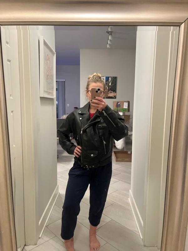 I absolutely LOVE this jacket. I've owned my fair share of moto jackets over the years and the quality of this one is outstanding. Every little detail is beautiful. I normally get XL in jackets for an oversize fit or for more room for sweaters underneath and even though ppl said in the comments that it's way too big, I find it to be the perfect fit. If you want something more fitted then definitely size down.