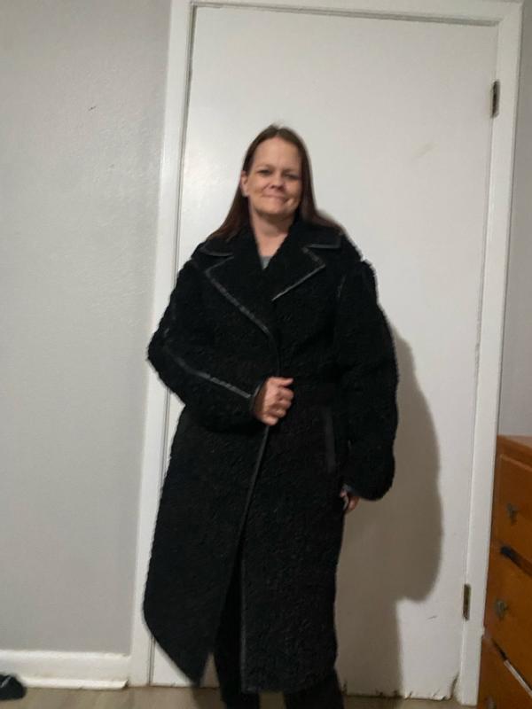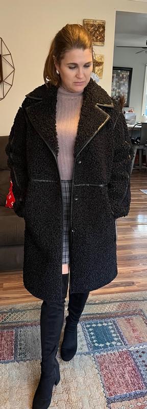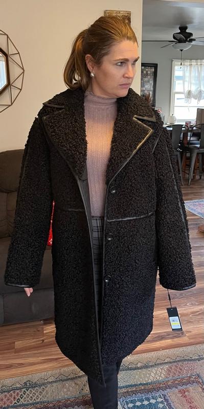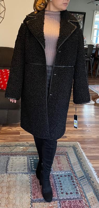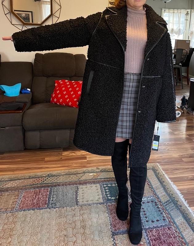 Women's Faux-Leather-Trim Teddy Coat