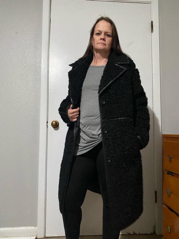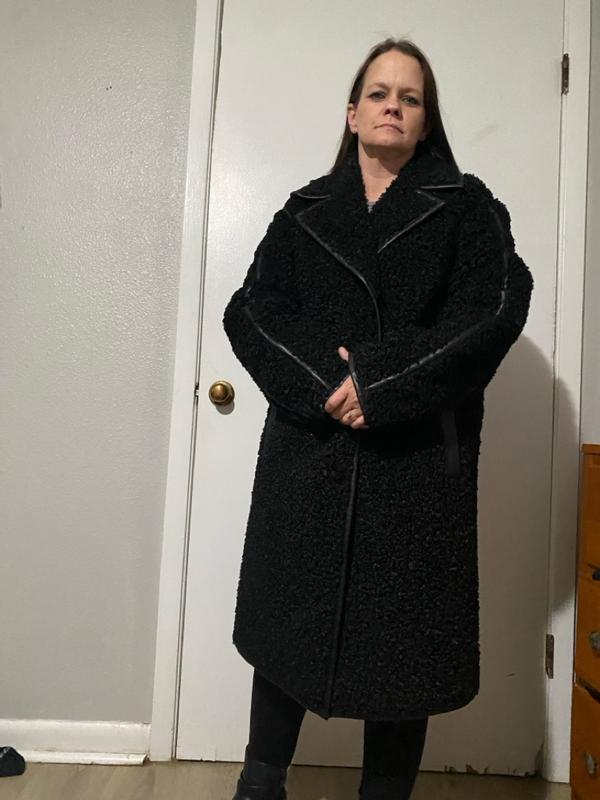 This is a beautiful coat. It is so soft and stylish. Unfortunately, I had to return it because it wasn't a good fit for my body frame.