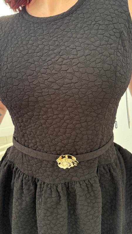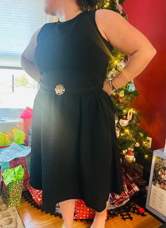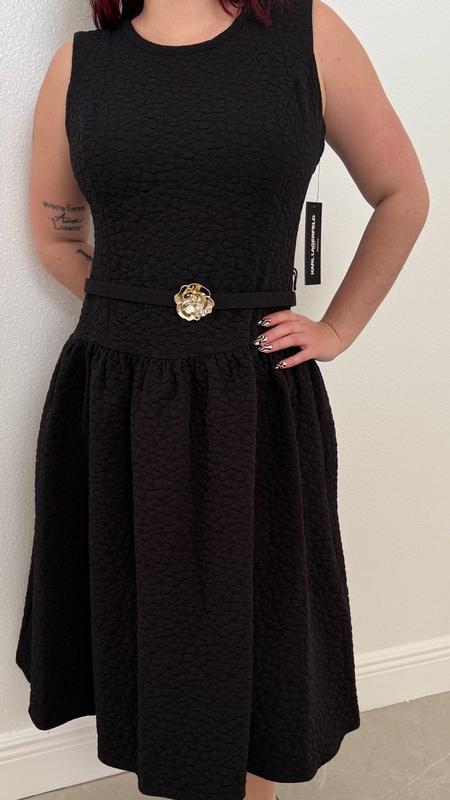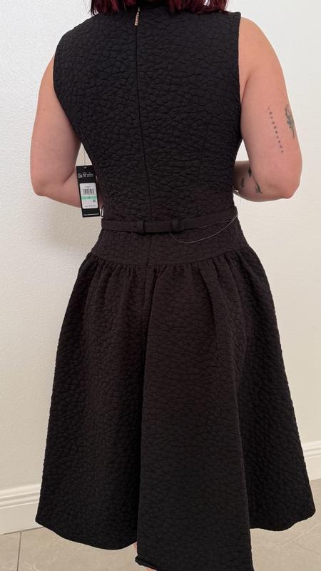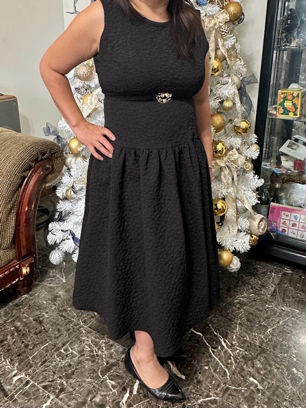 I really like this dress and how comfortable it feels. The fabric is thick, stretchy, and feels high quality, which helps the dress hold its shape nicely. I’m wearing a size 8 and it runs pretty true to size. The length gives it a polished, elegant look, and the material feels durable and easy to maintain. My only issue is the belt placement — it sits at the waist while the seam between the top and skirt falls lower, closer to the hips, so they don’t quite line up. Overall, it’s a well-made, easy-to-wear dress that works well for dressy casual days and special occasions.