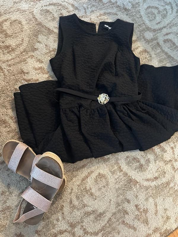 The Karl Lagerfeld Paris Crewneck Belted Dress is beautifully made. It is a great material with a subtle floral design. It fits well and has some give with the fabric. I’d recommend. Can be dressed up for any occasion.
