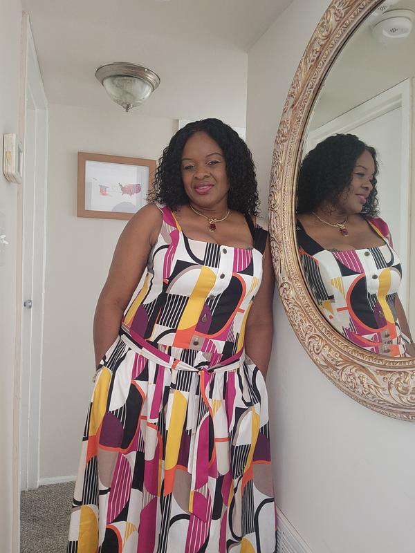 Women's Geo-Print Midi Dress