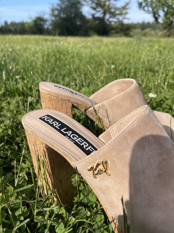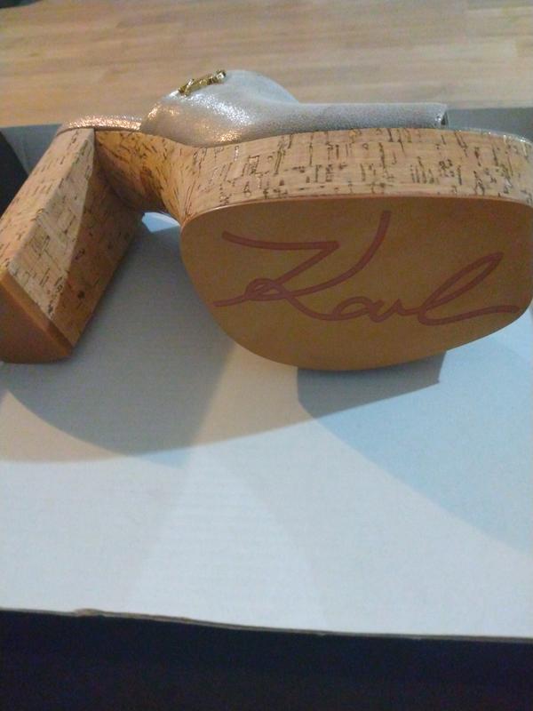 I am pleased with my Karl Lagerfeld Hensley Platform Sneakers. I chose the black ones and they are very versatile. I can dress them up or wear them with casual outfits. The slope of the footbed is comfortable and the material that covers the top of the foot is lightweight. The black has shimmer; it is not a dull black, but catches the light in certain angles. The cork appearance of the lower part of the shoe is not uniform, there are spots missing the pattern. I'm unsure if this is an intentional element in the design. The decorative "Karl" logo is gold tone and looks elegant. The sturdy heels provide height and added stability. I am able to walk briskly or go dancing in these shoes. Clean up of dust or debris from walking outside is a breeze, I just wipe them down with a damp cloth. I would recommend these as a pair of shoes you can wear to multiple functions or events.