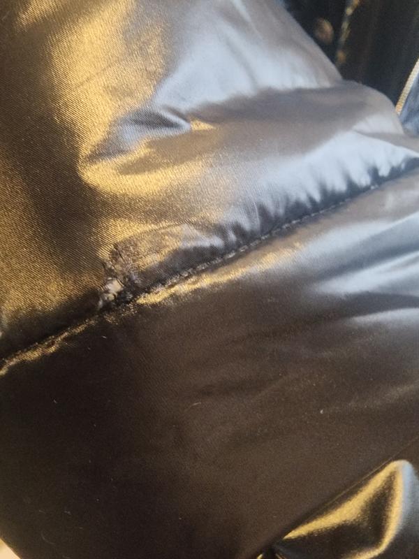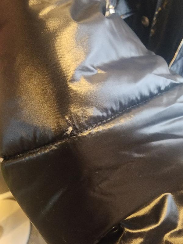Hello Macy's, purchased my Karl Largerfield coat and went to put it on and the sleeve has a small tear on the right sleeve 😪
