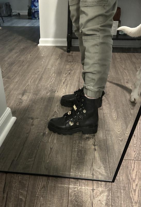 Best purchase, very comfortable! Not to heavy and normally leather boots hurt my pinky toes but this has not. I have heel pain and I use my wedge inserts it’s still comfortable. The look is great. I didn’t know how’d I feel about the name on the shoe laces but it I sized perfectly. Very cute boot, you can dress it up or down!