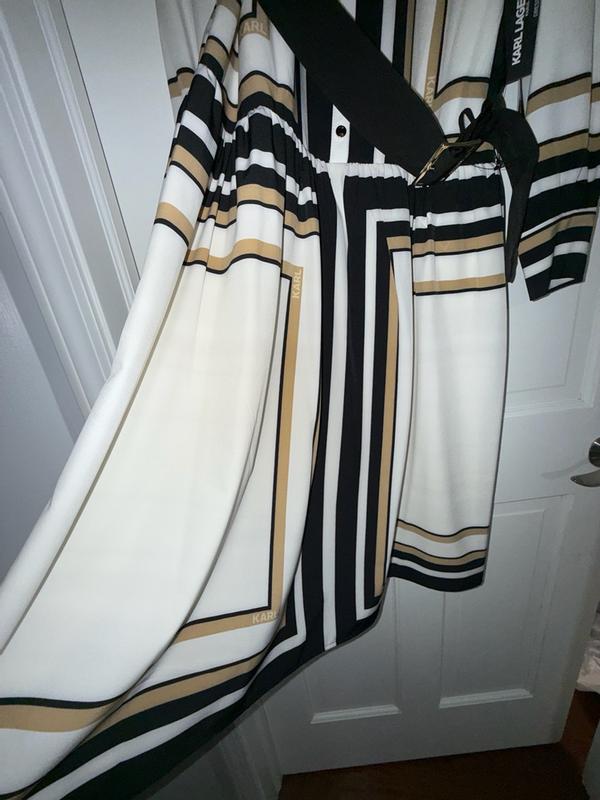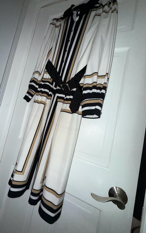 I absolutely love the Karl Lagerfeld Paris Women’s Printed Crepe Collar Shirt Dress. It feels like one of those pieces I’ll reach for again and again. The print is really pretty and polished, and the crepe fabric has a nice weight to it that makes the dress feel substantial and well made rather than flimsy. I especially appreciate that it’s fully lined, which adds to the comfort and quality and helps it drape beautifully. The length is perfect for me since it falls well below my knees, giving it a classy, sophisticated look that I’m very comfortable wearing. The collared shirt-dress style is timeless, and the adjustable belt is a great feature because it lets me customize the fit and define my waist just the way I like. Overall, the craftsmanship is excellent, and you can truly tell this is a high-quality dress that looks and feels luxurious.