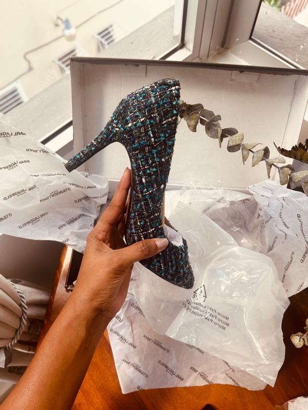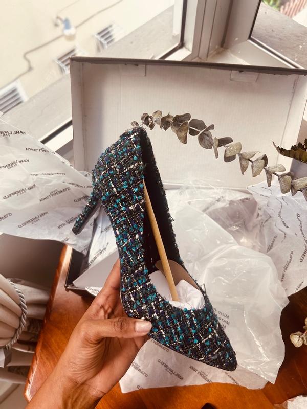 I received these heels complimentary for my honest review from Karl Lagerfeld & Influenster. I love the pattern of these shoes, the fabric feels luxurious and thick, the padding in the sole feels great as well. I wanted to love these heels so bad but they felt really unstable. They felt as if I were walking on broken heels they felt wobbly and as if they were going to break at any moment. I am a plus sized girly and unsure if that was my issue or not but I expected shoes from this brand to be more stable. I will be gladly gifting these to someone who can wear them comfortably but for those interested in getting these if you have weak ankles, beware.