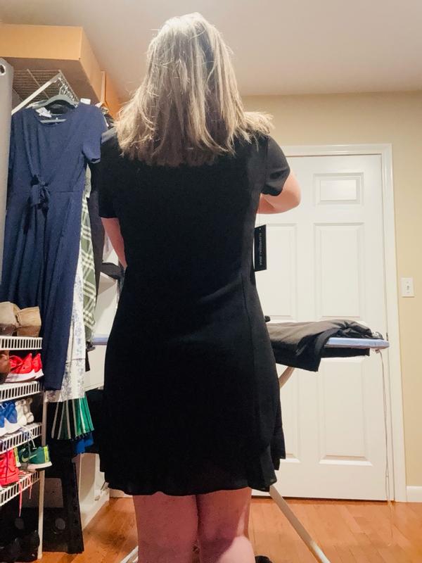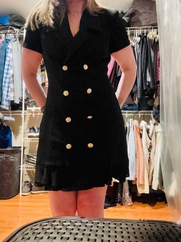 This dress is so pretty. I love the fabric because it’s soft and easy to wear. The hem is adorable with the added ruffles and the dress is durable and stretchy. The stitching looks nice as well with the blazer like design. I love styling this with a nice pair of heels.