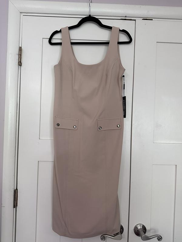 I like the dress and the color. It’s very sleek and stylish. I feel like you could wear to work with a jacket and then out to dinner afterwards. The tank is just a lovely design. I recommend to anyone who wants a comfortable but stylish dress.